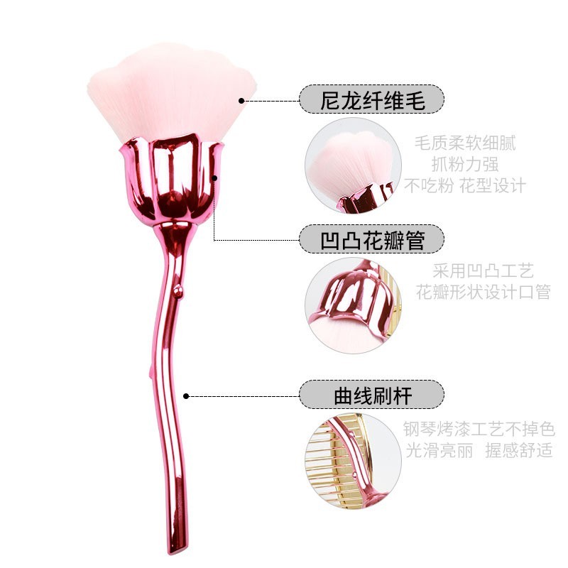 东莞市聚凯化妆工具科技有限公司发布的单支长柄软毛玫瑰花散粉刷大号美甲粉尘刷子腮红刷OEM跨境化妆刷图集库