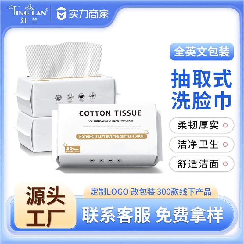 广州市白云区石井汀兰无纺布制品厂发布的定制全英文抽式洗脸巾棉柔巾擦脸巾加厚洁面巾OEM贴牌英文包装图集库