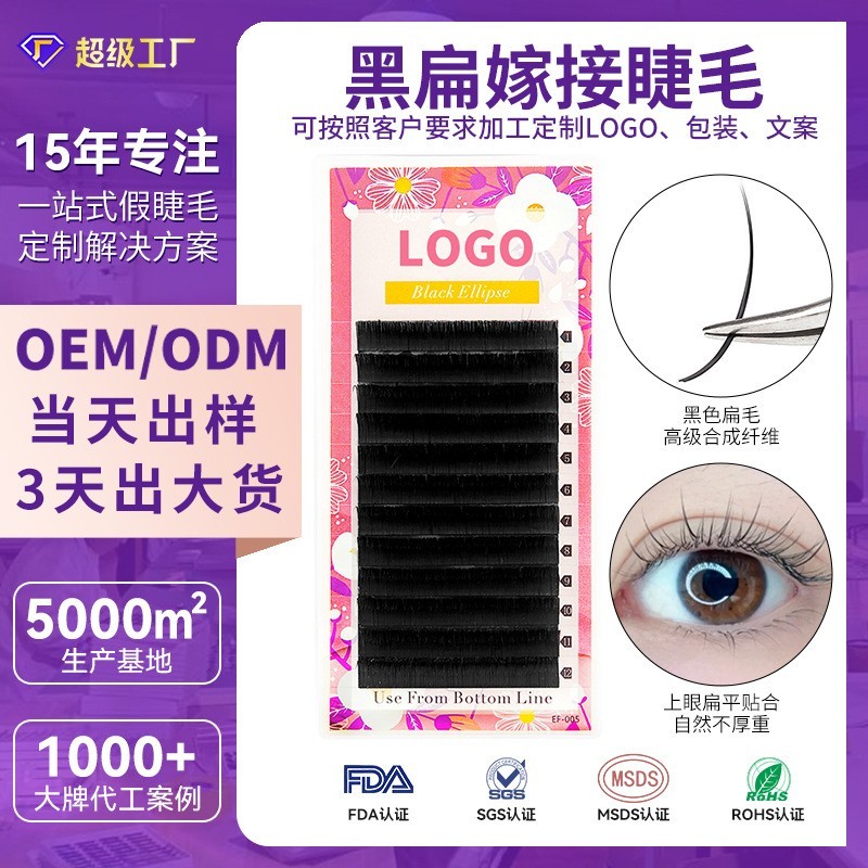 青岛椰莉思睫毛有限责任公司发布的工厂定制跨境双尖扁毛睫毛单根卷翘假睫毛自然大容量黑扁嫁接睫毛图集库