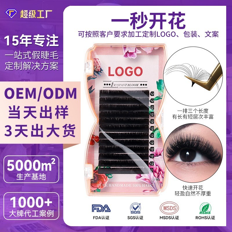 青岛椰莉思睫毛有限责任公司发布的工厂定制一秒开花嫁接睫毛0.07芭比翘混合柔软自然浓密3D开花睫毛图集库