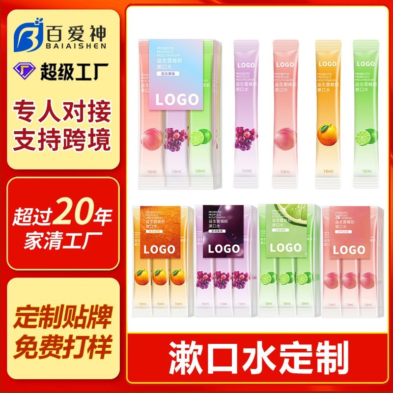 广州市百爱神生物科技有限公司发布的定制益生菌蜂胶漱口水便携式盒装漱口水呵护牙龈清洁口腔贴牌加工图集库