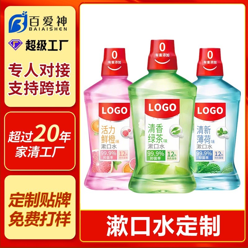 广州市百爱神生物科技有限公司发布的定制薄荷漱口水瓶装贴牌清新口气漱口水口腔清洁漱口液代加工OEM图集库
