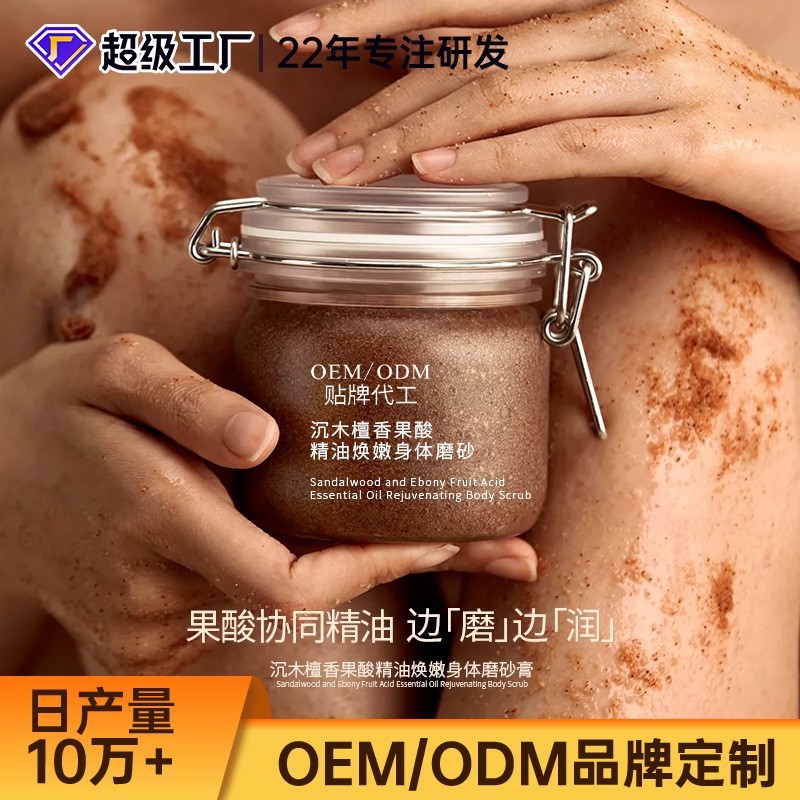 广州市华侬化妆品股份有限公司发布的沉木檀香果酸精油身体磨砂膏定制植物精油去角质清洁留香滋润嫩滑图集库