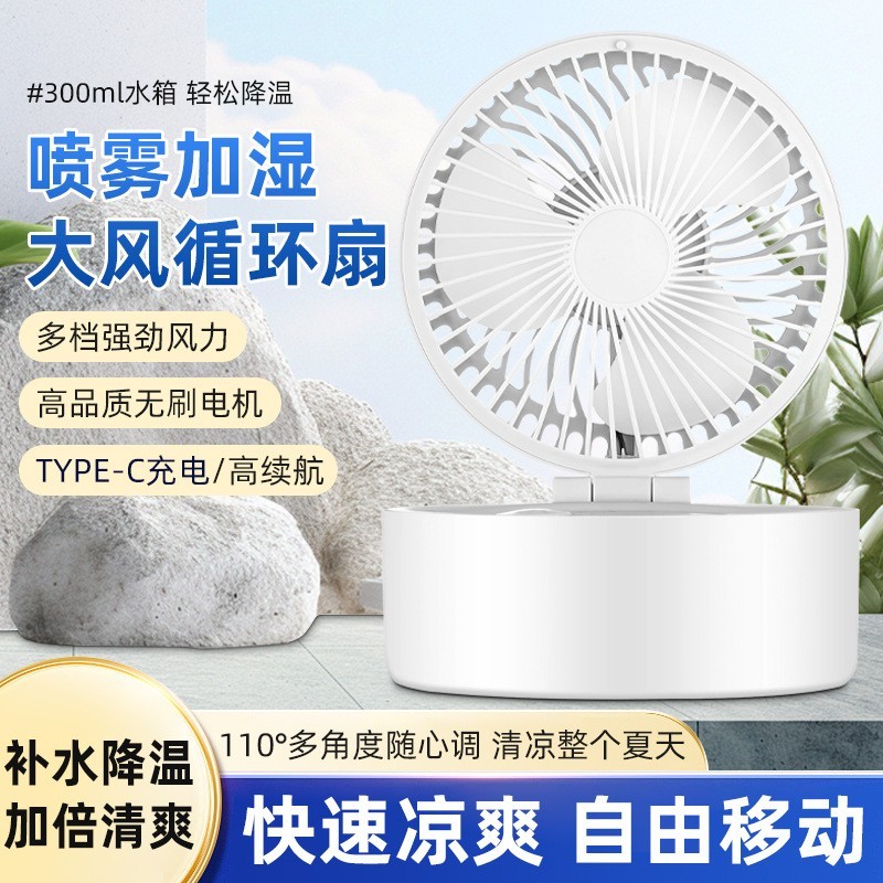 中山市博臻电器有限公司发布的台式喷雾风扇手持折叠桌面大风力USB充电便携式迷你小风扇加湿图集库