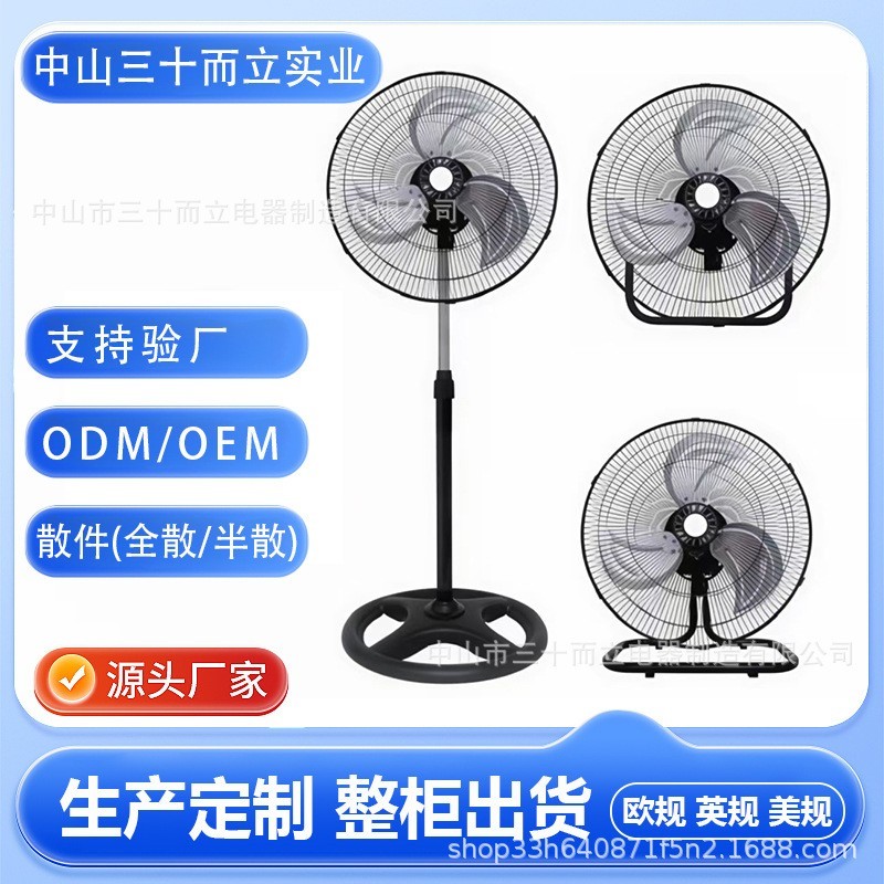 中山市三十而立电器制造有限公司发布的跨境定制外贸电风扇18寸工业落地扇三合一摇头风扇台立式扇图集库