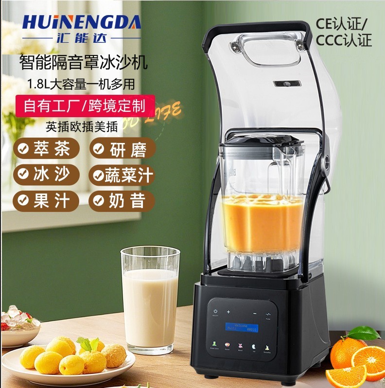 中山市汇能达电器有限公司发布的新款外贸英文版触屏款带隔音罩冰沙机厂家可做各种语言静音图集库