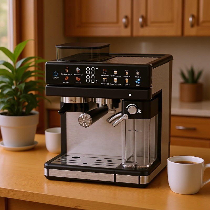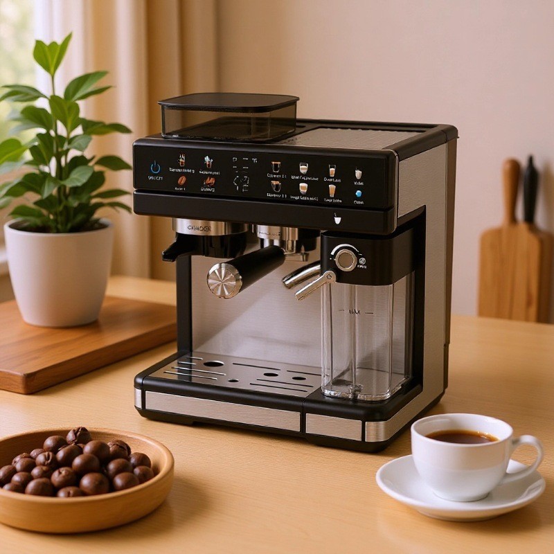 佛山市拓宝电器有限公司发布的可定制研磨奶泡冷热双萃3合1多功能家用意式半自动咖啡机图集库