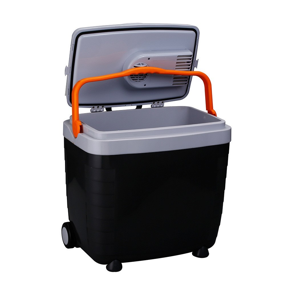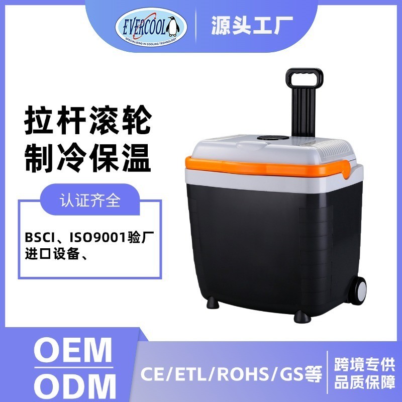宁波佳源电子有限公司发布的户外车载冰箱车家两用28L半导体野营冷热保温箱12v滚轮PU发泡便携图集库