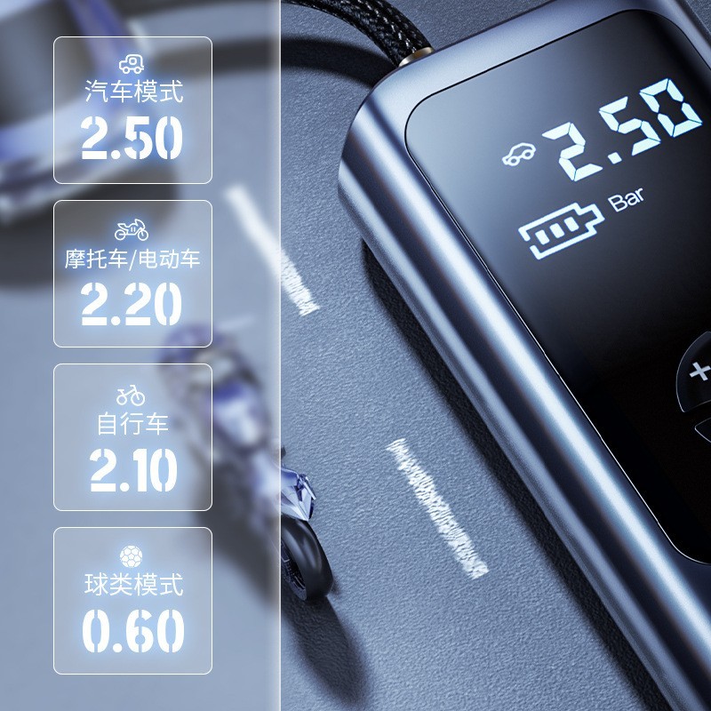 宁波市鑫程汽车用品有限公司发布的定制车载充气泵便携式电动车轮胎打气筒无线数显汽车用迷你打气泵图集库
