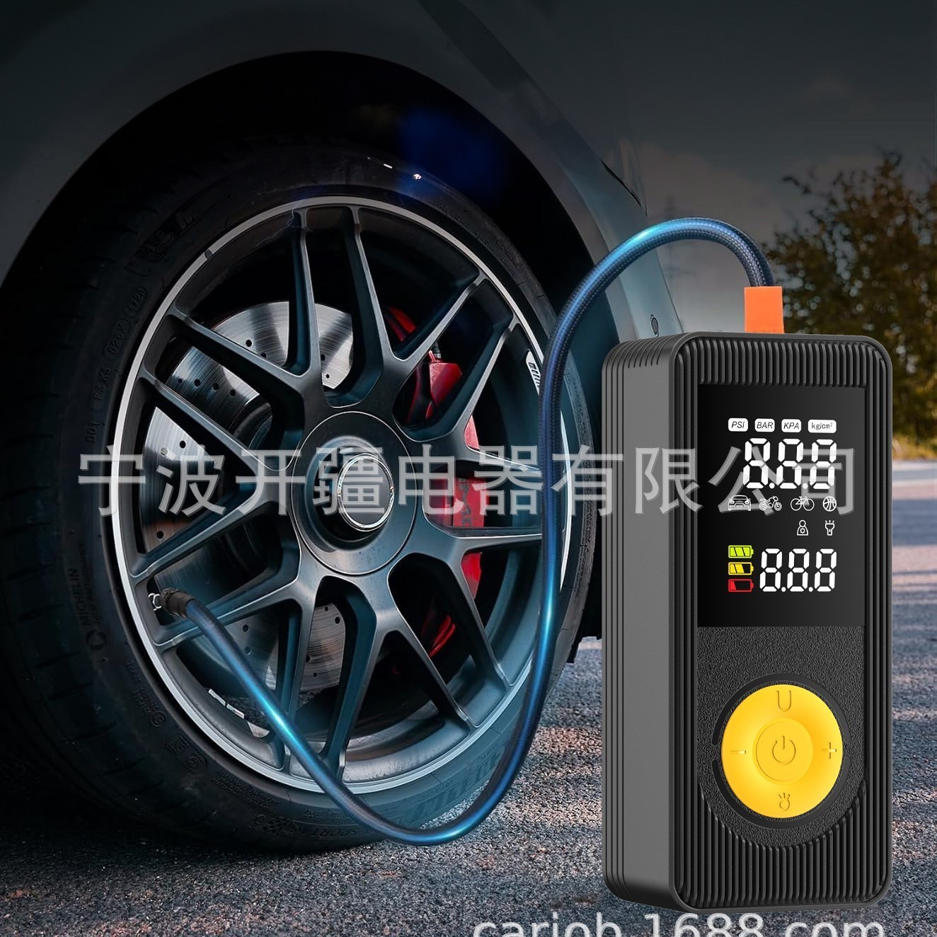 宁波开疆电器有限公司发布的充气机便携式压缩机快速充气双动力气泵无绳便携式轮胎充气机图集库