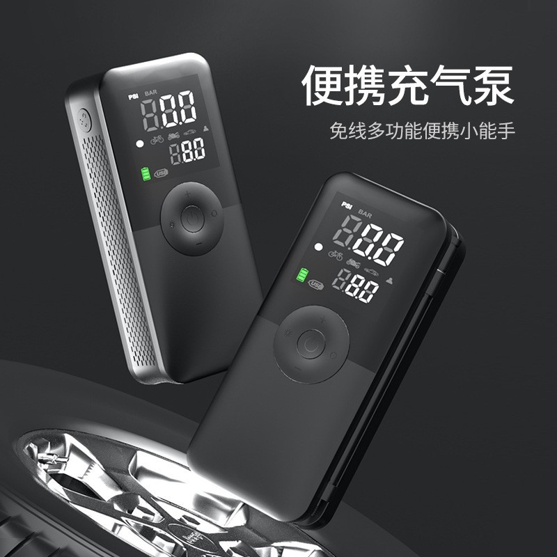 义乌市畅达汽车用品有限公司发布的车载无线充气泵便携式汽车轮胎电动打气泵紧急照明胎压充气宝图集库