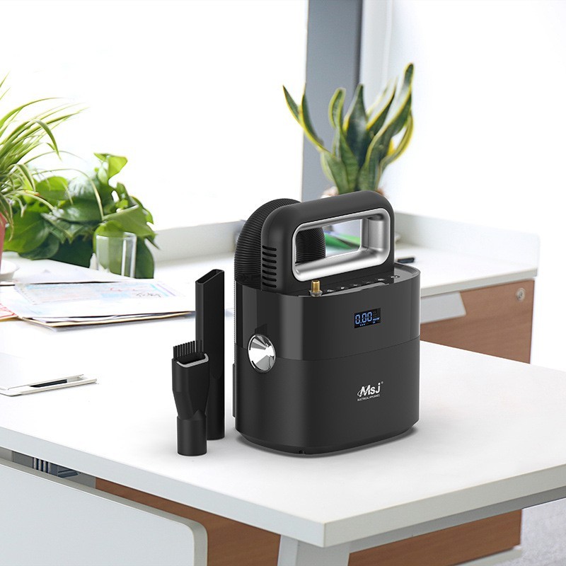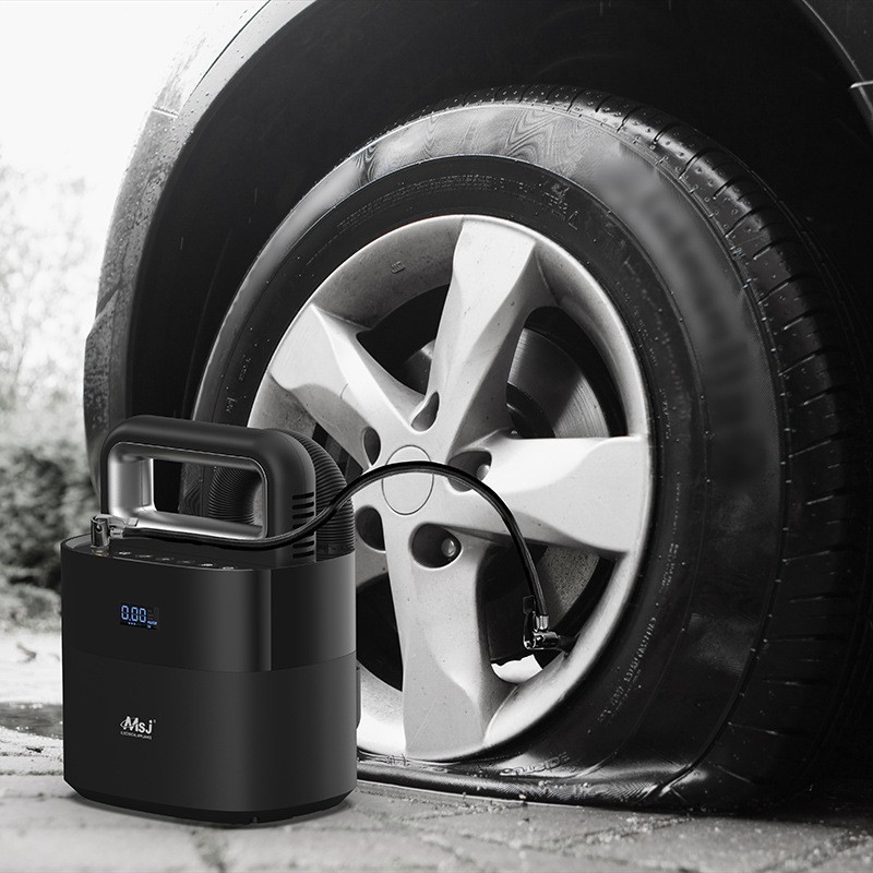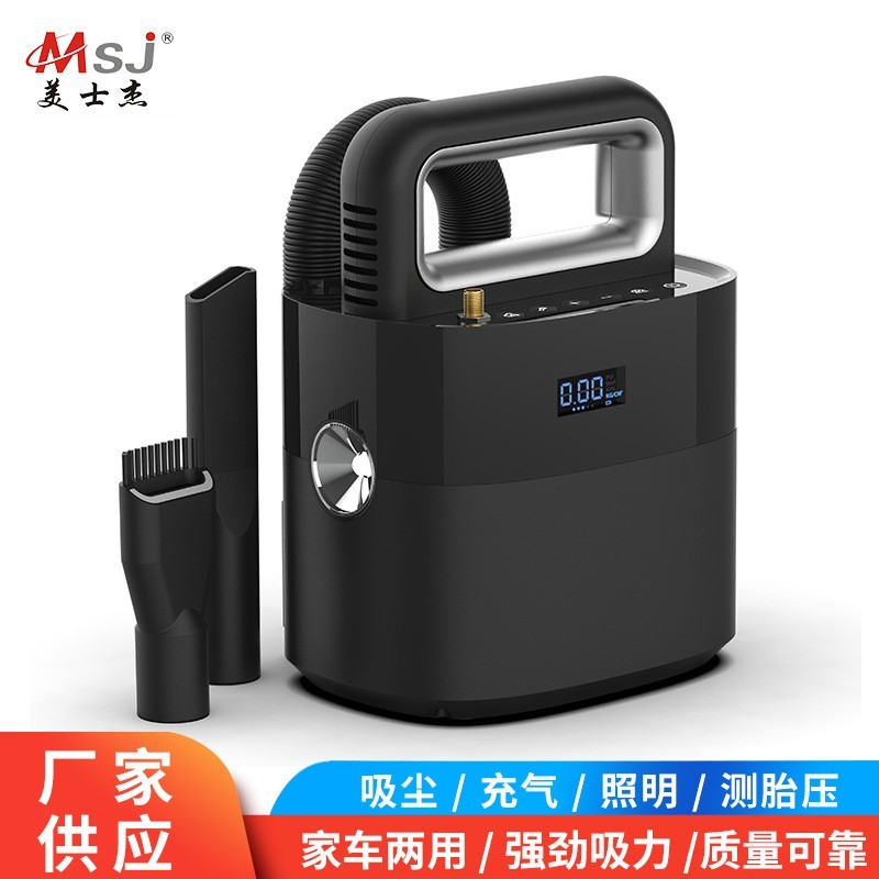 余姚市美士杰电器有限公司发布的定制四合一充气泵 无线充电家车两用智能数显胎压监测照明充气泵图集库