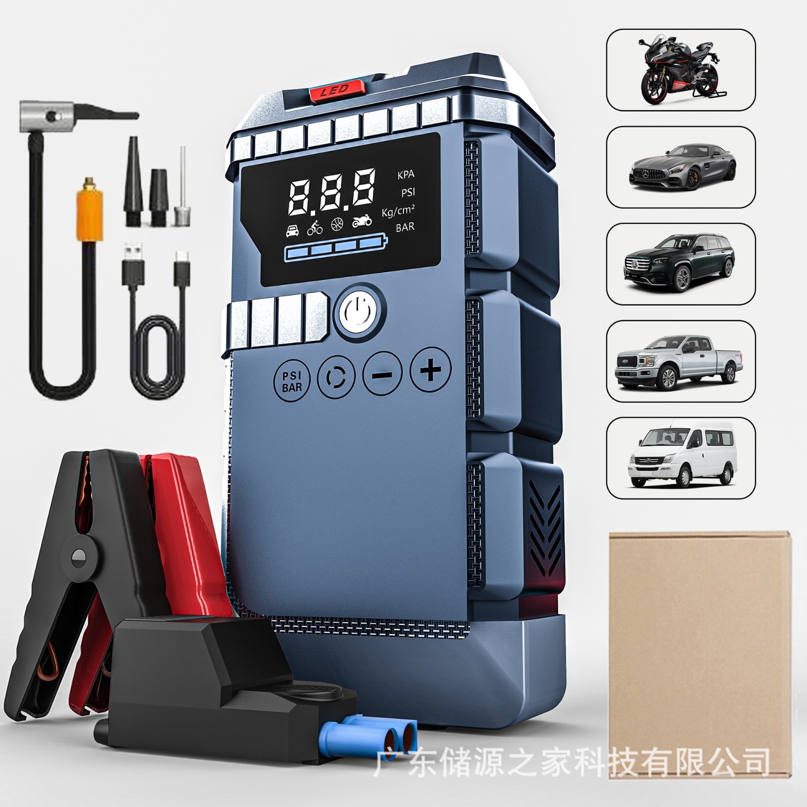 广东储源之家科技有限公司发布的快充大功率搭电宝贴牌测胎压充气汽车应急启动气泵一体机图集库