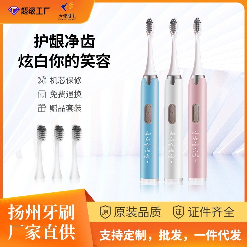 扬州玉洁日化科技有限公司发布的源头厂家电动牙刷超声波扫振美白亮白软毛旅行家用USB 充电式多档图集库