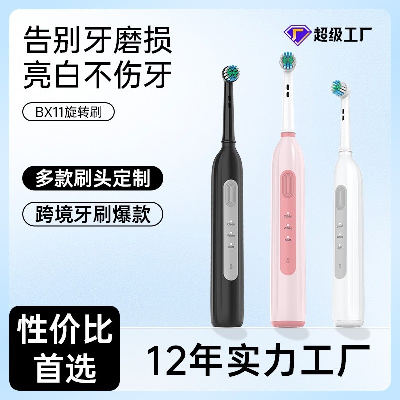 深圳市宝丽洁科技有限公司发布的跨境外贸套装OEM定制旋转电动牙刷头 长续航杜邦清洁金属轴圆头刷图集库