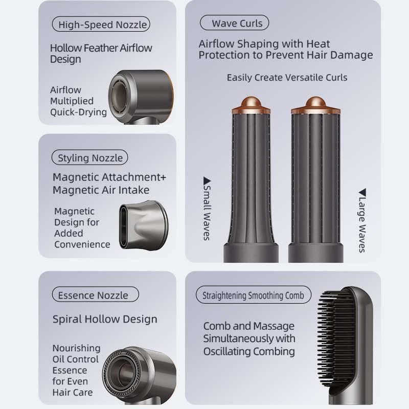 东莞市美云悦享电器有限公司发布的跨境多功能吹风机干卷直三用热风梳负离子家用大风力高速吹风机图集库
