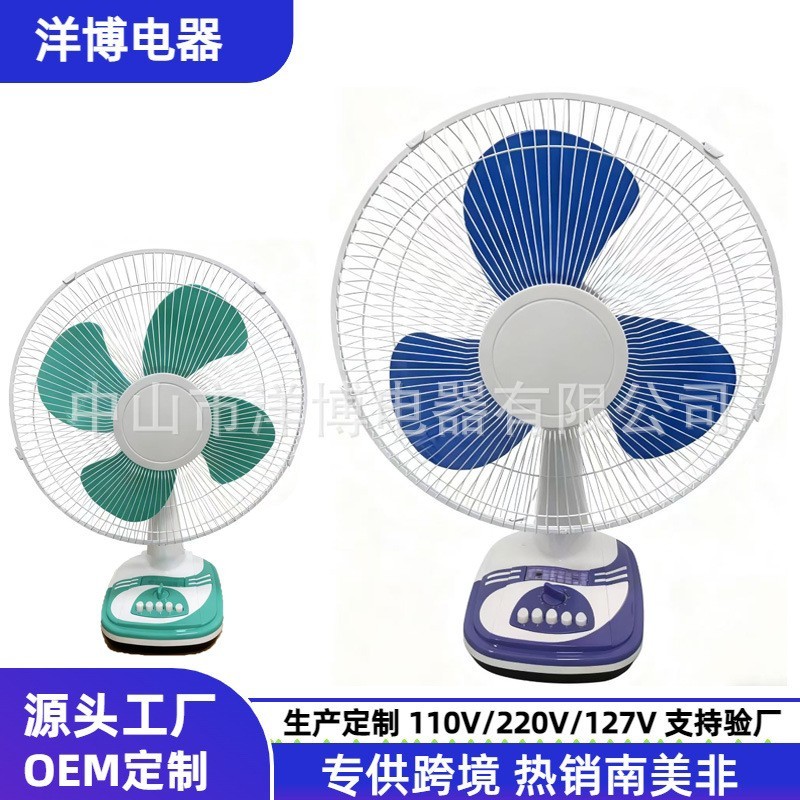 中山市洋博电器有限公司发布的外贸工厂16寸台扇大风力电风扇家用桌面摇头学生宿舍12寸风扇110v图集库