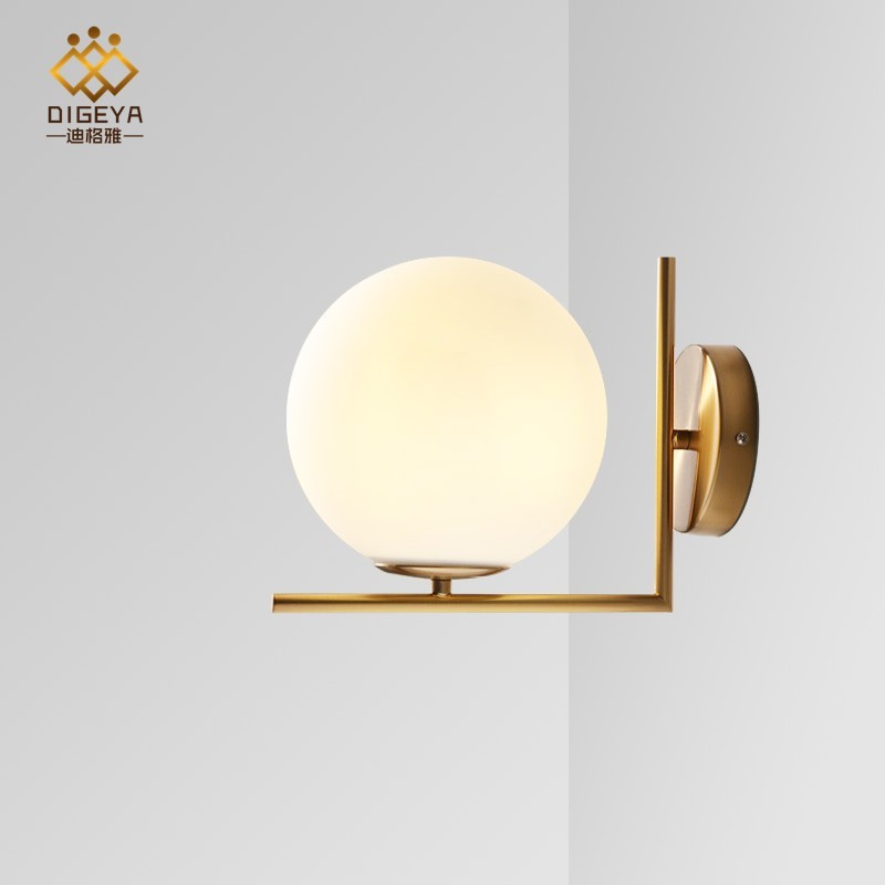 中山市林心迪格雅灯饰有限公司发布的北欧圆球玻璃壁灯现代简约卧室床头客厅创意个性走廊过道装饰壁灯图集库