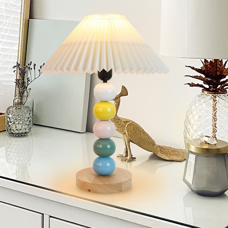 潮州市潮安区型色家居饰品有限公司发布的北欧创意木底座陶瓷灯体装饰台灯百褶纸灯罩家居书房床头现代台灯图集库