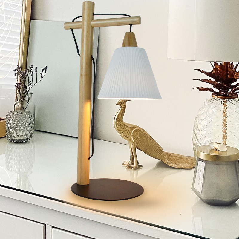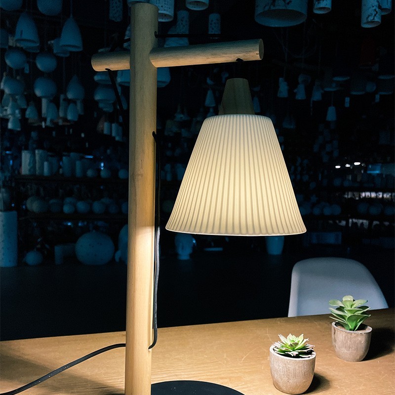 潮州市潮安区型色家居饰品有限公司发布的书桌咖啡厅精致日式简约原宿风木制底座白色陶瓷灯罩吊线艺术台灯图集库
