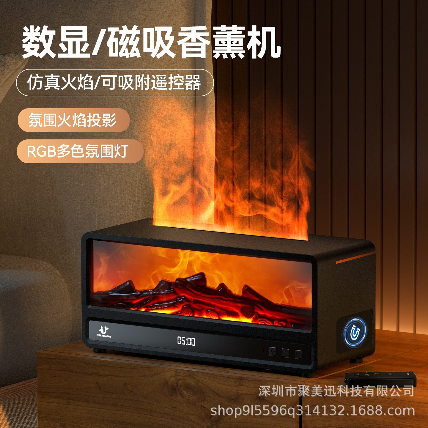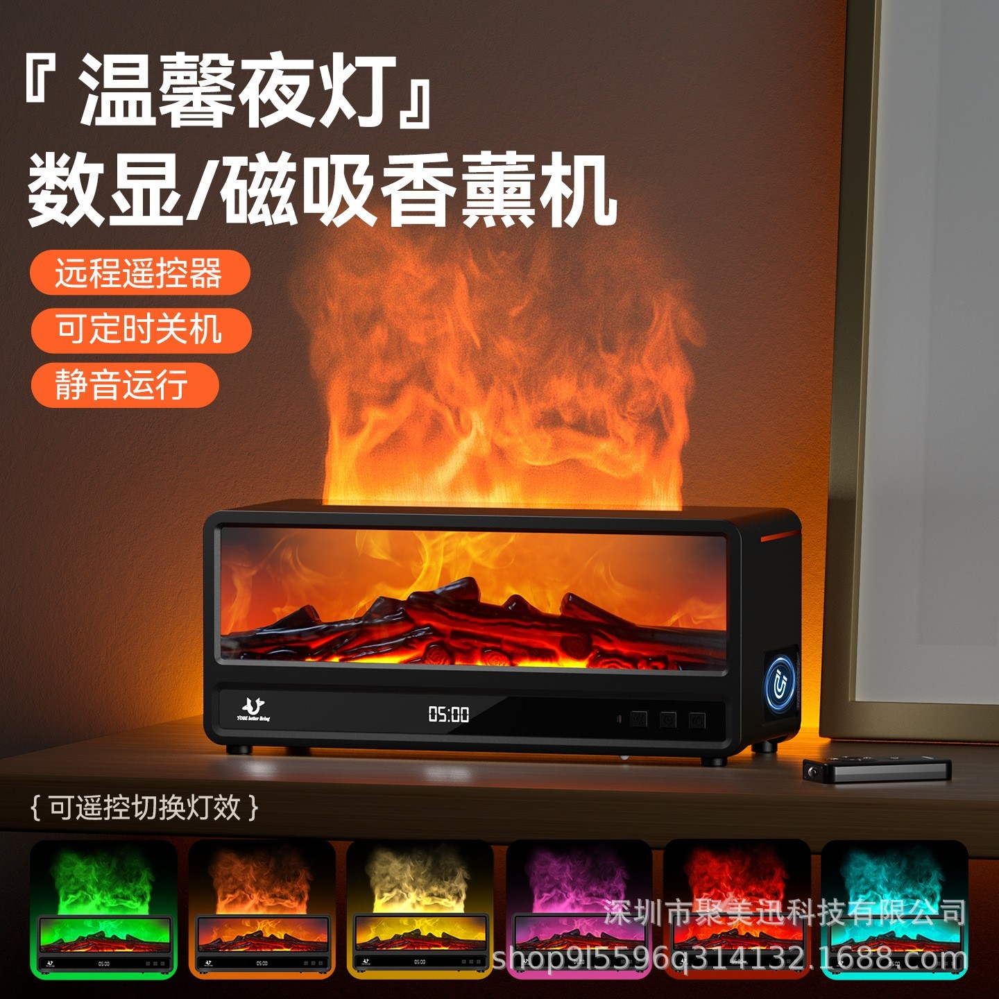 深圳市聚美迅科技有限公司发布的新款磁吸香薰机复古壁炉香氛机家用精油扩香机七彩火焰数显香薰机图集库