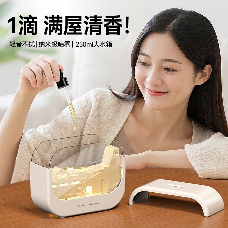 深圳市聚美迅科技有限公司发布的新款跨境微景观香薰加湿器雨滴七彩渐变灯光大容量喷雾精油扩香机图集库