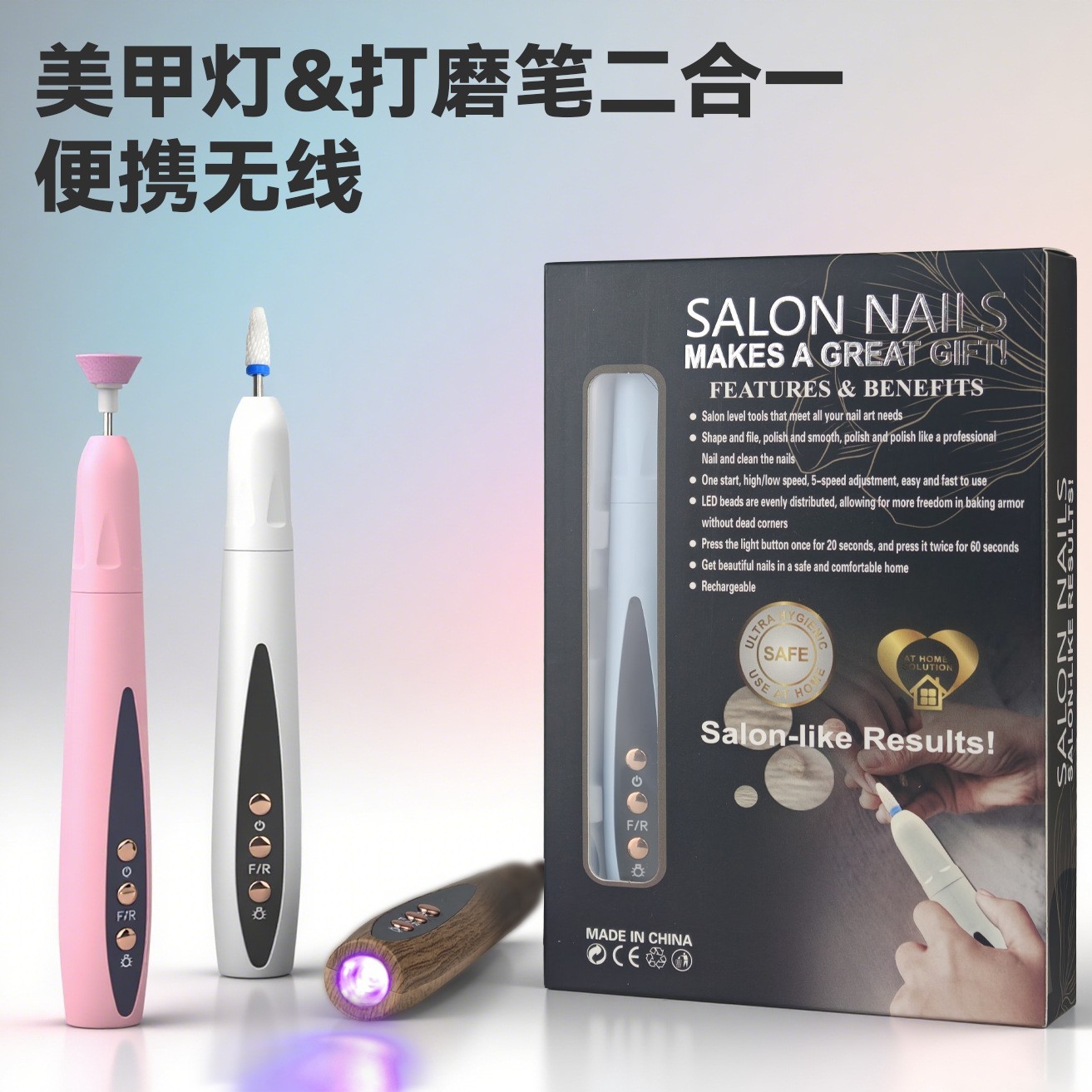 温州易澄电子科技有限公司发布的跨境新款电动磨甲器打磨笔速干美甲灯二合一 便携式美甲打磨机图集库