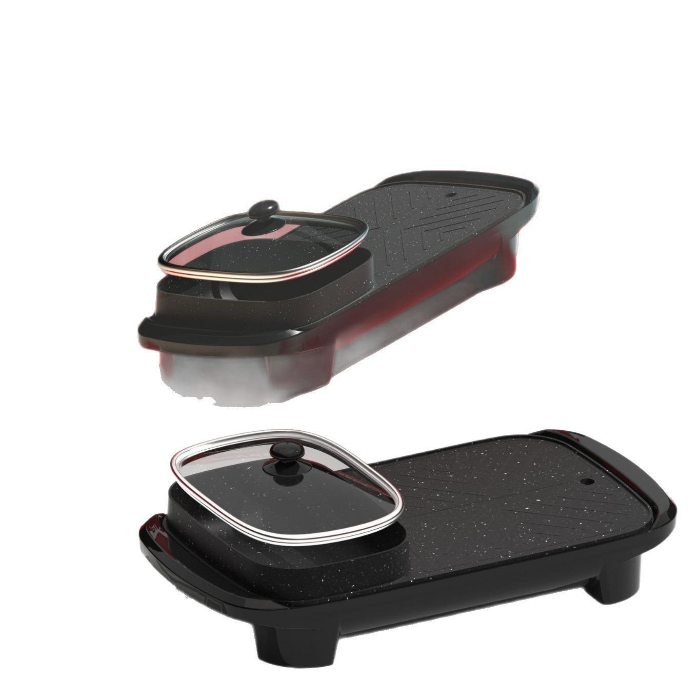永康市良君日用五金制品厂发布的涮烤一体锅家用多功能一体韩式电烤炉鸳鸯锅烤肉机长方烤肉盘礼品图集库